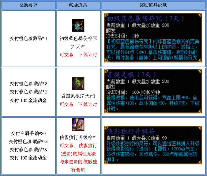 活动期间与“藏宝阁阁主”对话可兑换以下各类道具: